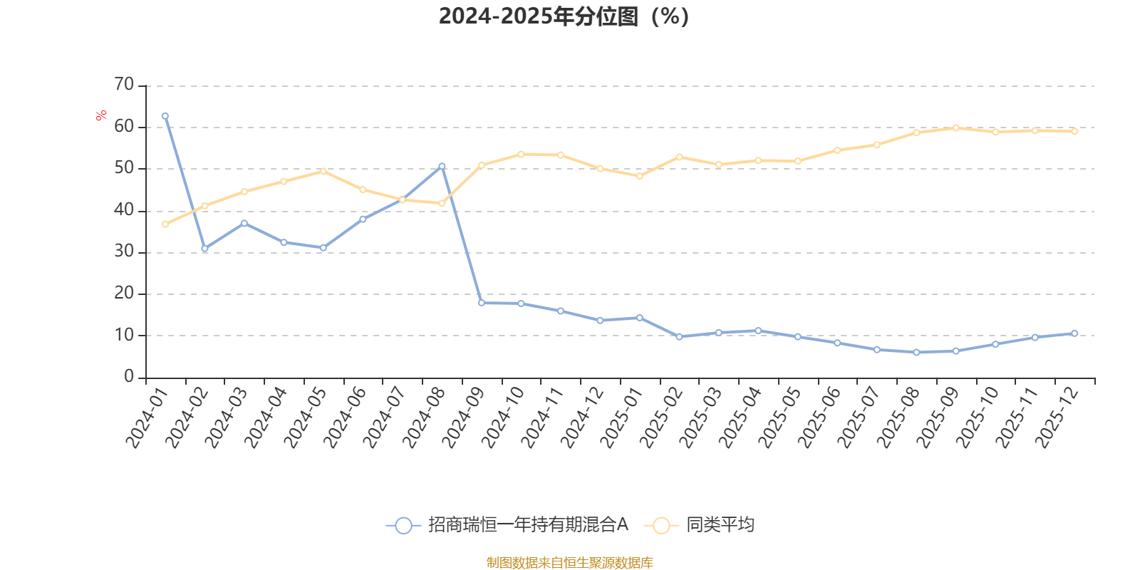 通过所选区间该基金净值增长率分位图,可以观察该基金与同类基金业绩比较情况。图为坐标原点到区间内某时点的净值增长率在同类基金中的分位数。