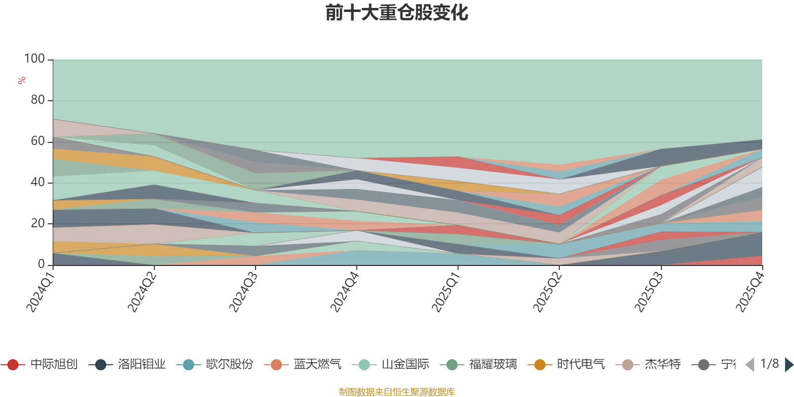 截至2025年四季度末,基金十大重仓股分别是洛阳钼业、紫金黄金国际、盛屯矿业、中国宏桥、金诚信、金盘科技、华友钴业、中国人寿、中际旭创、海光信息。