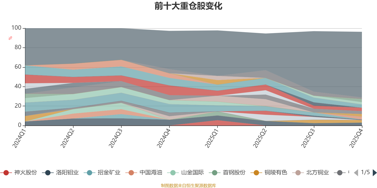 截至2025年四季度末,基金十大重仓股分别是招商轮船、中远海能、华友钴业、鲁西化工、中国有色矿业、洛阳钼业、铜陵有色、中广核矿业、江西铜业股份、赤峰黄金。