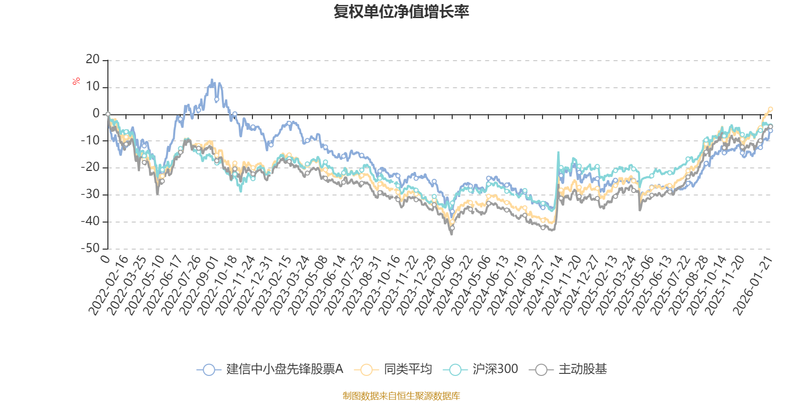 截至1月21日,建信中小盘先锋股票A近三个月复权单位净值增长率为8.04%,位于同类可比基金100/167;近半年复权单位净值增长率为28.02%,位于同类可比基金85/167;近一年复权单位净值增长率为24.52%,位于同类可比基金138/165;近三年复权单位净值增长率为-0.55%,位于同类可比基金126/156。
