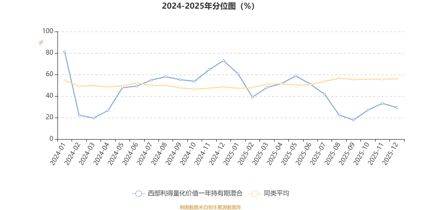 通过所选区间该基金净值增长率分位图,可以观察该基金与同类基金业绩比较情况。图为坐标原点到区间内某时点的净值增长率在同类基金中的分位数。