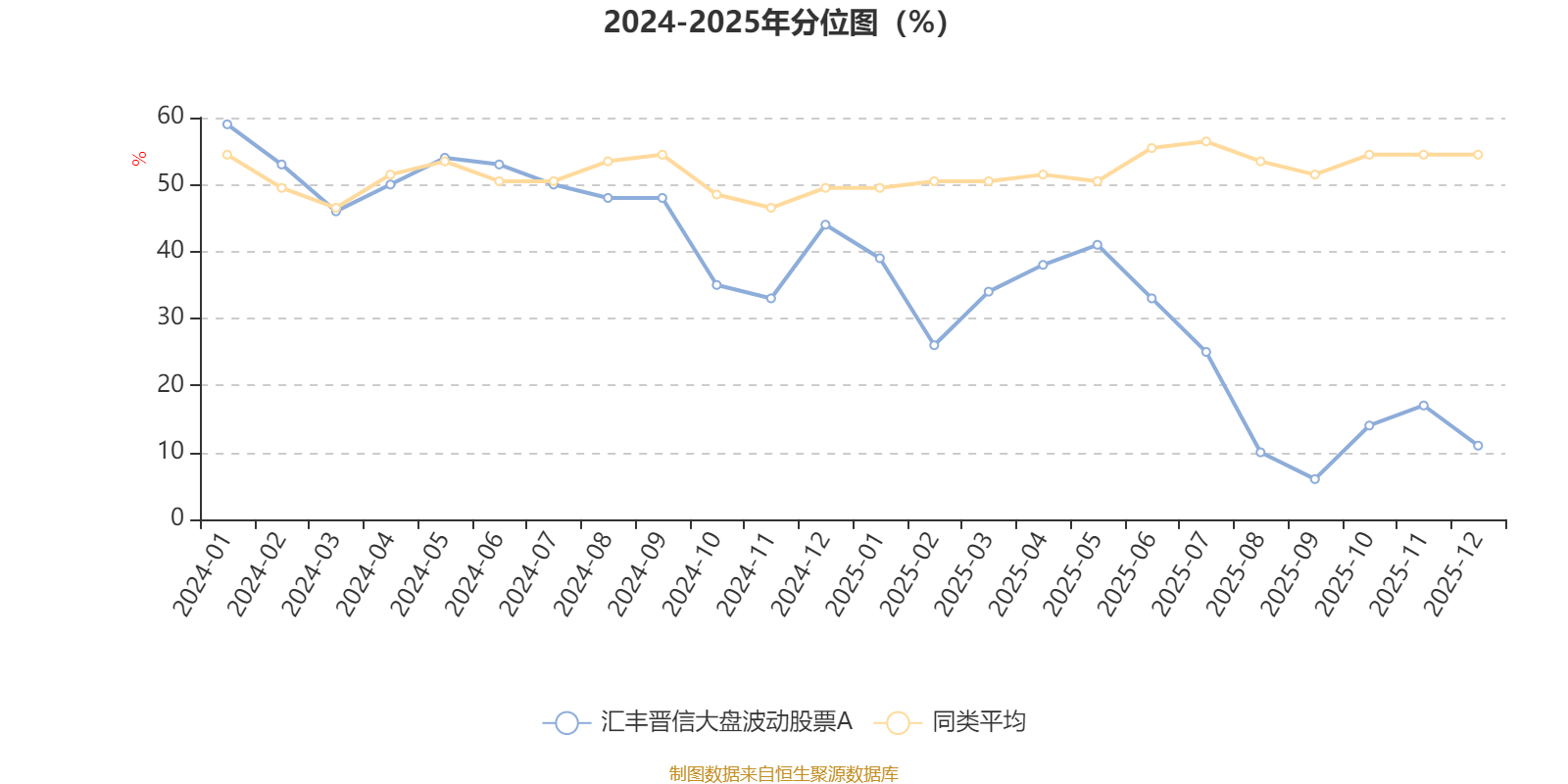 通过所选区间该基金净值增长率分位图,可以观察该基金与同类基金业绩比较情况。图为坐标原点到区间内某时点的净值增长率在同类基金中的分位数。