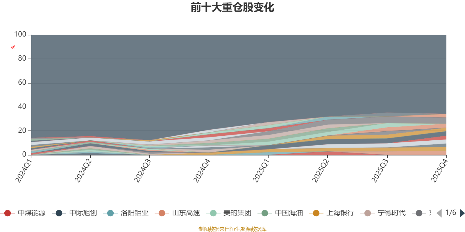截至2025年四季度末,基金十大重仓股分别是中国神华、江苏银行、山东高速、工商银行、皖通高速、杭州银行、南京银行、上海银行、四川成渝、中国建筑。