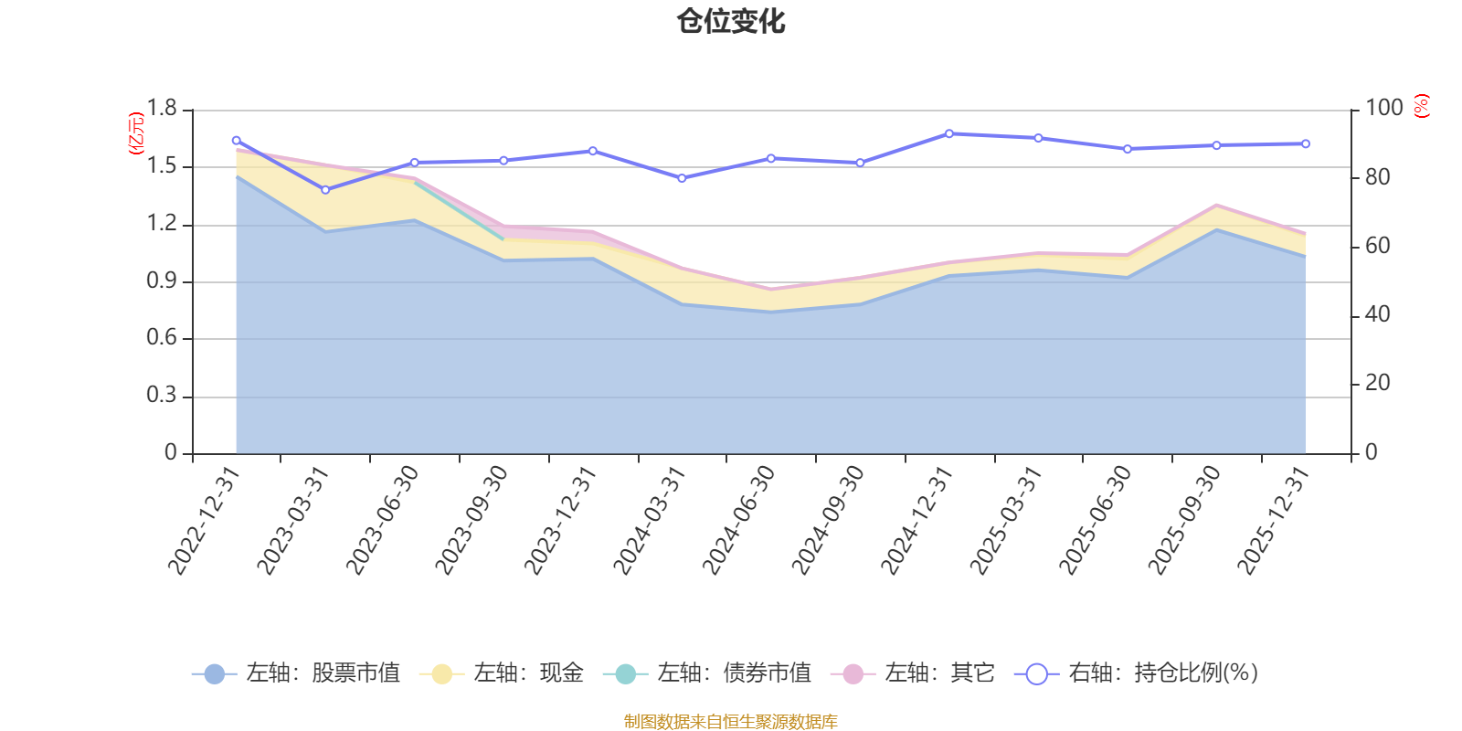 据定期报告数据统计,近三年平均股票仓位为86.5%,同类平均为84.04%。2024年末基金达到93.03%的最高仓位,2023年一季度末最低,为76.69%。