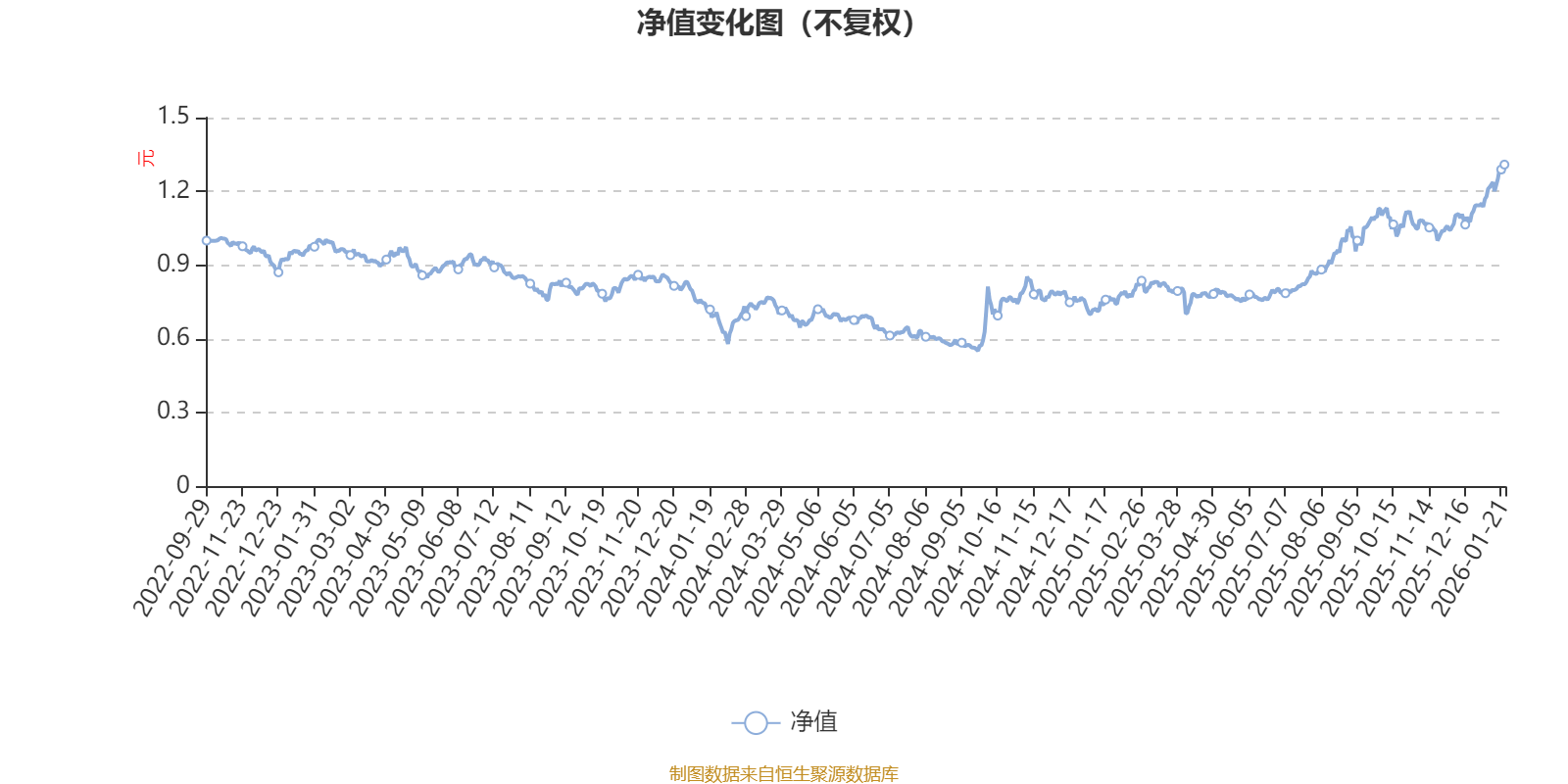 通过所选区间该基金净值增长率分位图,可以观察该基金与同类基金业绩比较情况。图为坐标原点到区间内某时点的净值增长率在同类基金中的分位数。
