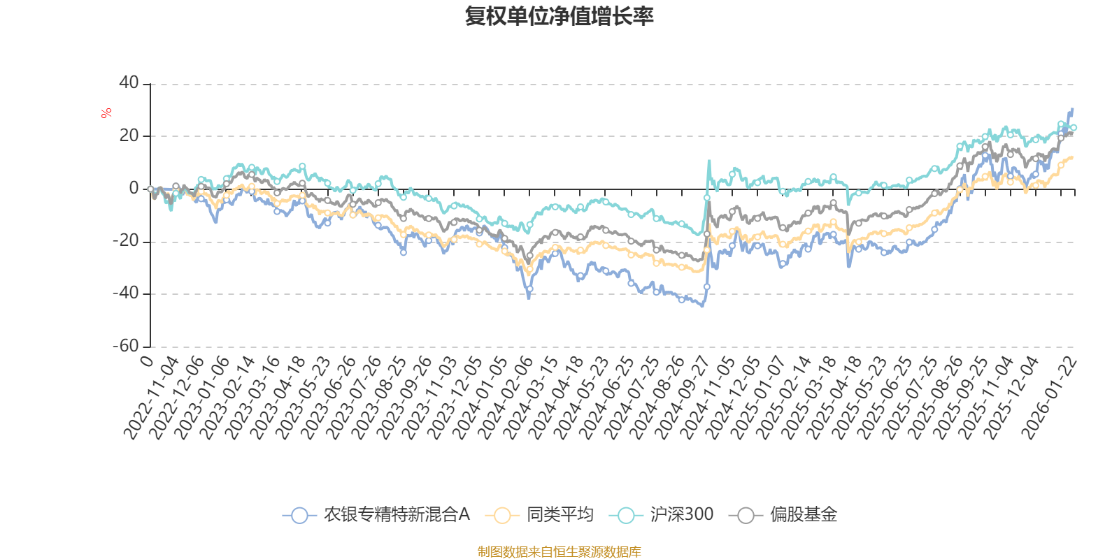 截至1月21日,农银专精特新混合A近三个月复权单位净值增长率为23.56%,位于同类可比基金39/689;近半年复权单位净值增长率为59.48%,位于同类可比基金35/689;近一年复权单位净值增长率为69.72%,位于同类可比基金59/673;近三年复权单位净值增长率为33.95%,位于同类可比基金96/396。
