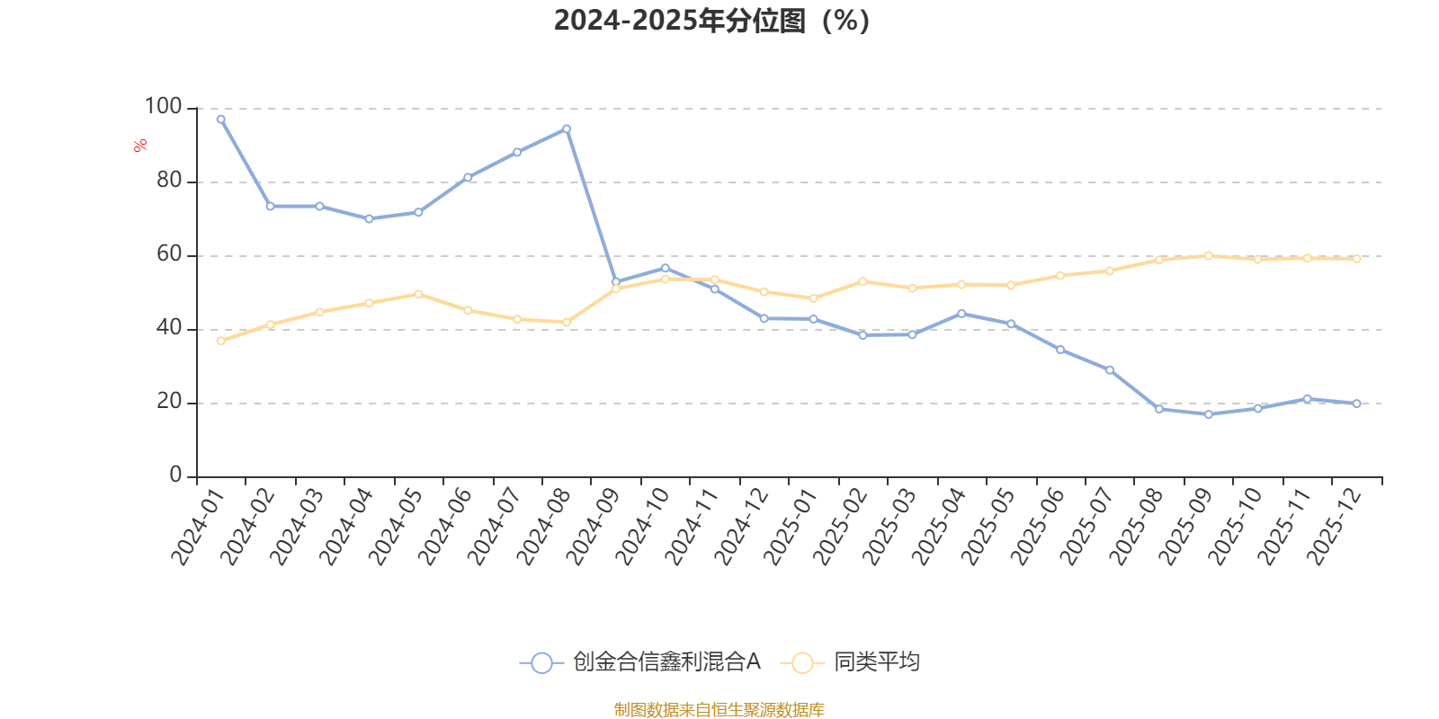 通过所选区间该基金净值增长率分位图,可以观察该基金与同类基金业绩比较情况。图为坐标原点到区间内某时点的净值增长率在同类基金中的分位数。