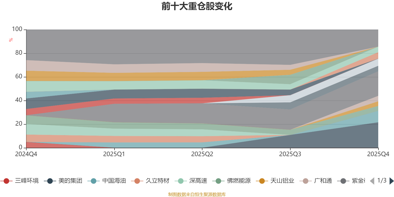 该基金持股集中度较高。截至2025年四季度末,基金十大重仓股分别是美的集团、紫金矿业、中国海油、中国移动、国电南瑞、上港集团、广和通、海优新材、佛燃能源、天山铝业。