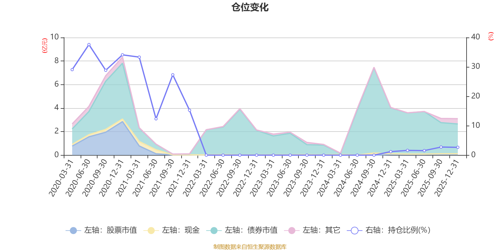 据定期报告数据统计,近三年平均股票仓位为0.82%,同类平均为19.2%。2020年上半年末基金达到37.6%的最高仓位,2024年末最低,为1.19%。