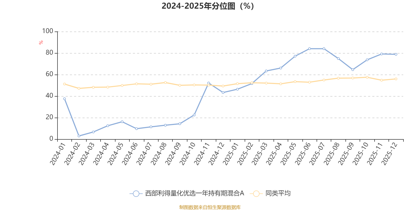 通过所选区间该基金净值增长率分位图,可以观察该基金与同类基金业绩比较情况。图为坐标原点到区间内某时点的净值增长率在同类基金中的分位数。
