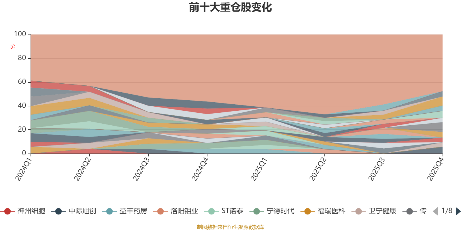 截至2025年四季度末,基金十大重仓股分别是新易盛、菲利华、寒武纪、中际旭创、伟测科技、世纪华通、鹏鼎控股、盛屯矿业、天岳先进、中孚实业。