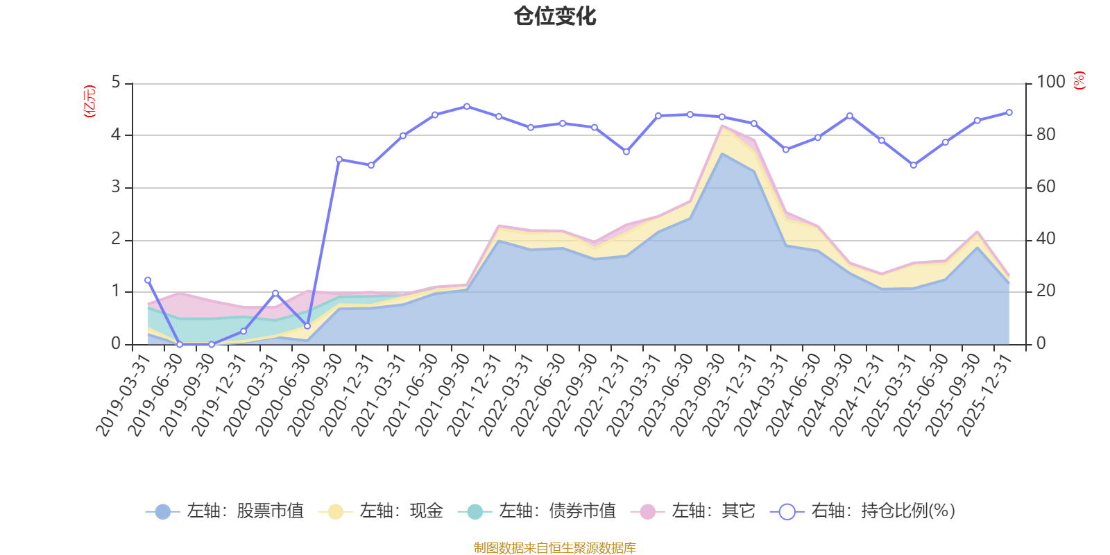 据定期报告数据统计,近三年平均股票仓位为82.29%,同类平均为72.57%。2021年三季度末基金达到91.12%的最高仓位,2019年末最低,为5.06%。