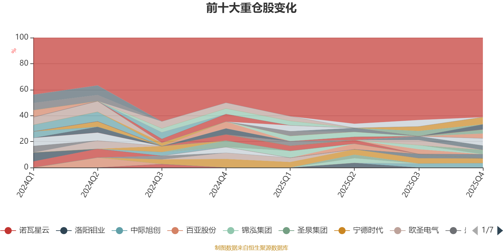 截至2025年四季度末,基金十大重仓股分别是菲利华、新易盛、世纪华通、寒武纪、宁德时代、紫金矿业、中际旭创、盛屯矿业、天岳先进、立讯精密。