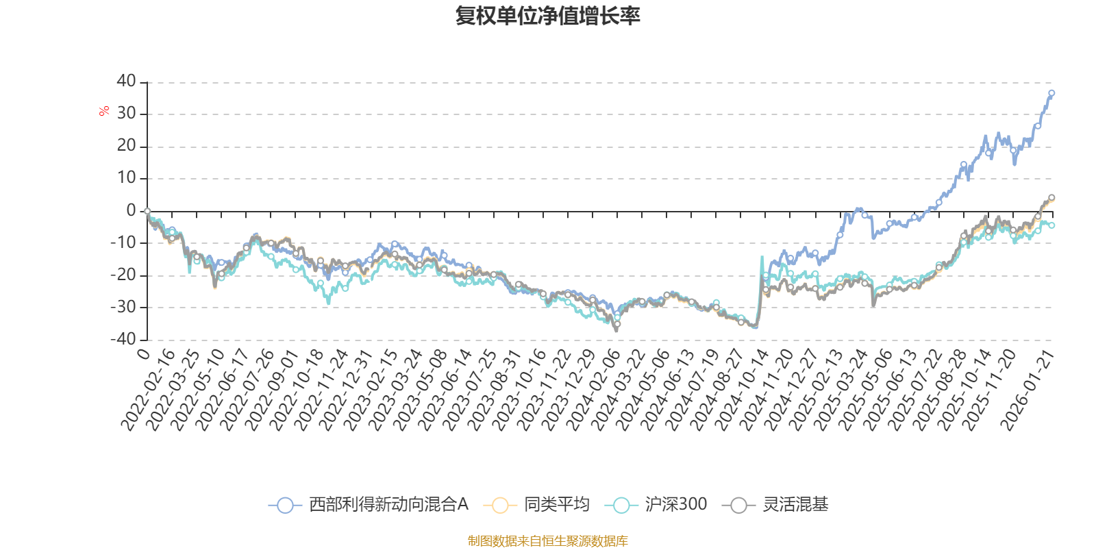 截至1月21日,西部利得新动向混合A近三个月复权单位净值增长率为14.59%,位于同类可比基金256/1286;近半年复权单位净值增长率为33.64%,位于同类可比基金366/1286;近一年复权单位净值增长率为55.45%,位于同类可比基金247/1286;近三年复权单位净值增长率为54.23%,位于同类可比基金156/1286。
