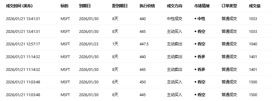 微软收跌2.29%,成交60.51万份期权合约,看跌/看涨成交量比升至0.50。微软副董事长警告中国在AI竞赛中领先美国,公司将在PhonePe印度IPO中出售股份,TD Cowen因产能限制担忧将目标价从655美元下调至625美元但维持买入评级。