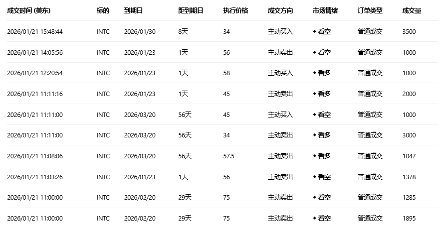 英特尔收涨11.72%,成交126.03万份期权合约,看跌/看涨成交量比升至0.49。英特尔股价财报前暴涨11%创四年新高,分析师预期服务器CPU需求强劲且供应紧张将推动业绩超预期,18A工艺进展和AI驱动的数据中心需求成为市场关注焦点。