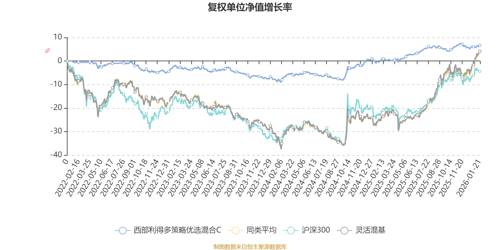 截至1月21日,西部利得多策略优选混合C近三个月复权单位净值增长率为0.95%,位于同类可比基金1107/1286;近半年复权单位净值增长率为0.69%,位于同类可比基金1219/1286;近一年复权单位净值增长率为7.02%,位于同类可比基金1149/1286;近三年复权单位净值增长率为8.96%,位于同类可比基金823/1286。