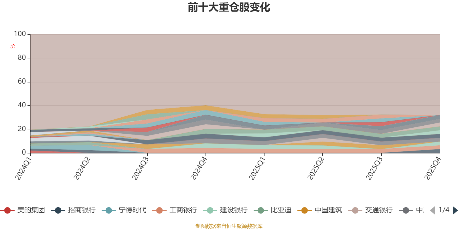 截至2025年四季度末,基金十大重仓股分别是中信银行、农业银行、中国石油、中国银行、工商银行、建设银行、招商银行、邮储银行、中远海控、中国神华。