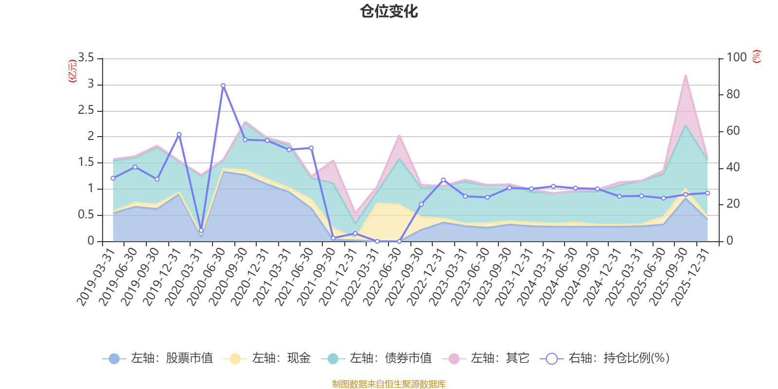 据定期报告数据统计,近三年平均股票仓位为26.66%,同类平均为72.57%。2020年上半年末基金达到85.18%的最高仓位,2022年一季度末最低,为0.03%。