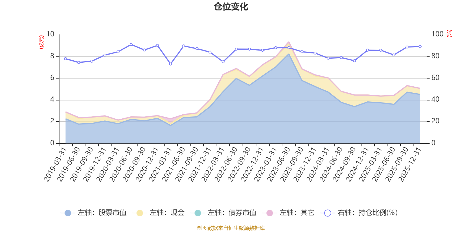 据定期报告数据统计,近三年平均股票仓位为83.92%,同类平均为85.83%。2020年上半年末基金达到90.95%的最高仓位,2021年一季度末最低,为73.01%。