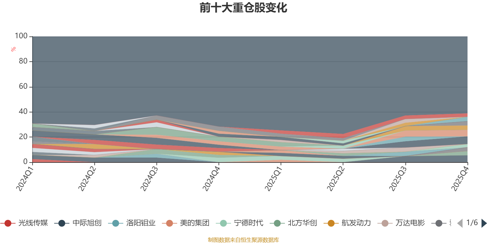 截至2025年四季度末,基金十大重仓股分别是新易盛、中际旭创、寒武纪、中微公司、中芯国际、海光信息、北方华创、雅克科技、复旦微电、天赐材料。