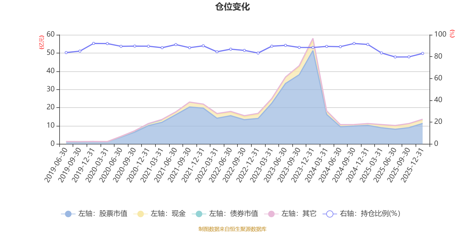据定期报告数据统计,近三年平均股票仓位为87.03%,同类平均为86.11%。2019年末基金达到92.13%的最高仓位,2025年上半年末最低,为79.69%。