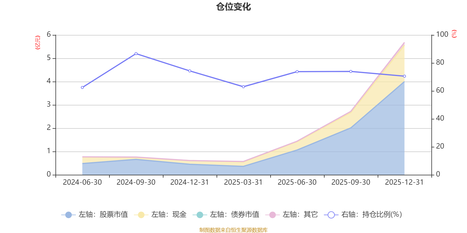 据定期报告数据统计,成立以来平均股票仓位为72.07%,同类平均为84.04%。2024年三季度末基金达到86.65%的最高仓位,2024年上半年末最低,为62.43%。