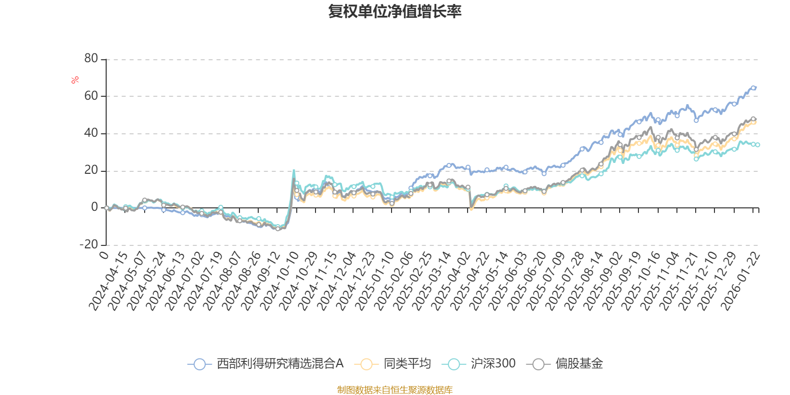 截至1月21日,西部利得研究精选混合A近三个月复权单位净值增长率为12.08%,位于同类可比基金214/689;近半年复权单位净值增长率为29.35%,位于同类可比基金253/689;近一年复权单位净值增长率为52.50%,位于同类可比基金155/673。