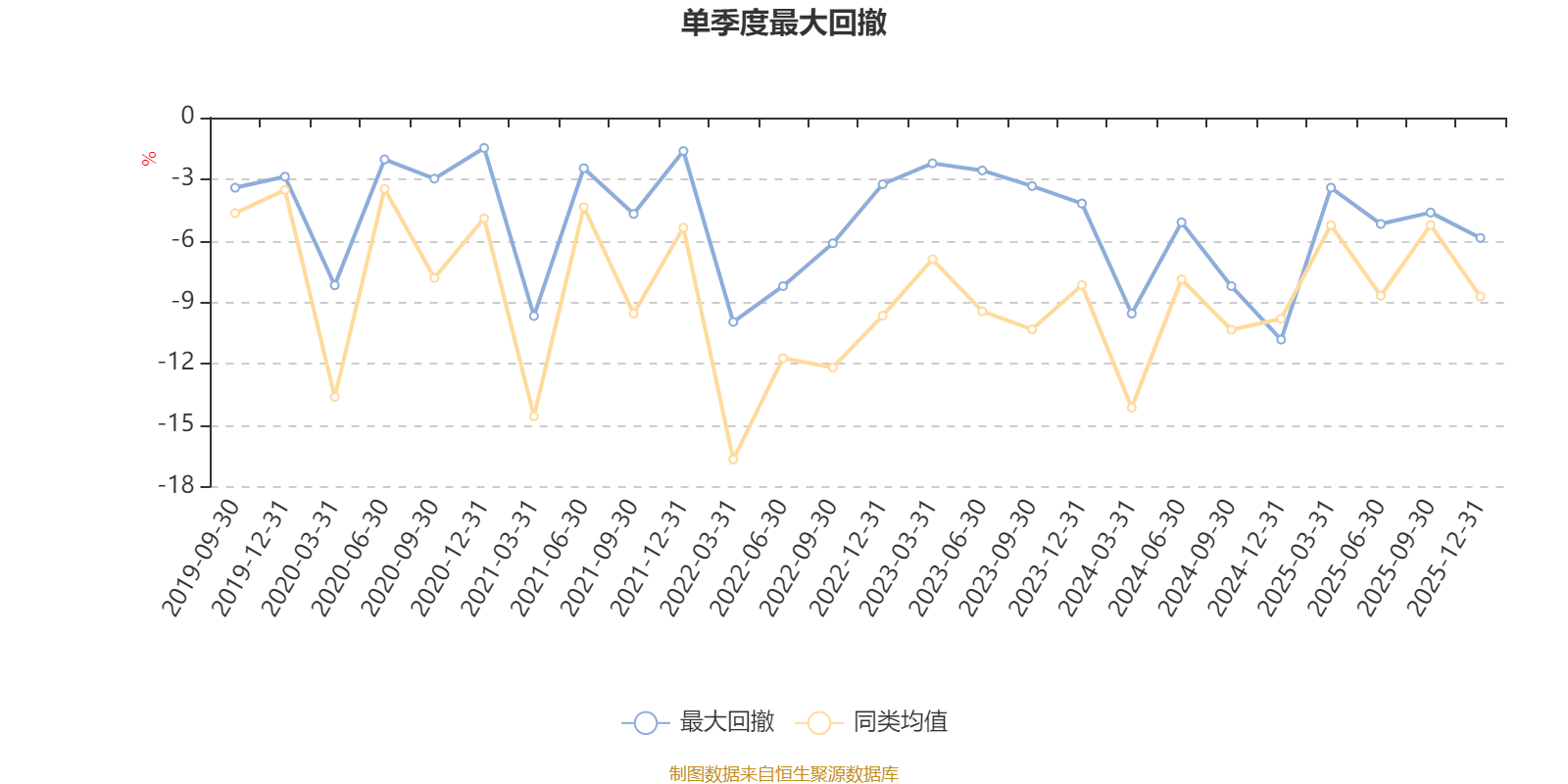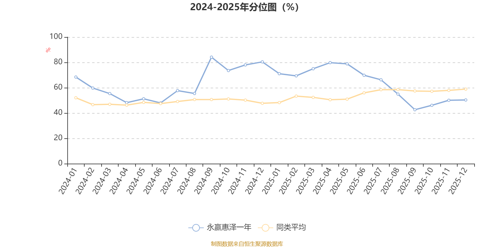 通过所选区间该基金净值增长率分位图,可以观察该基金与同类基金业绩比较情况。图为坐标原点到区间内某时点的净值增长率在同类基金中的分位数。
