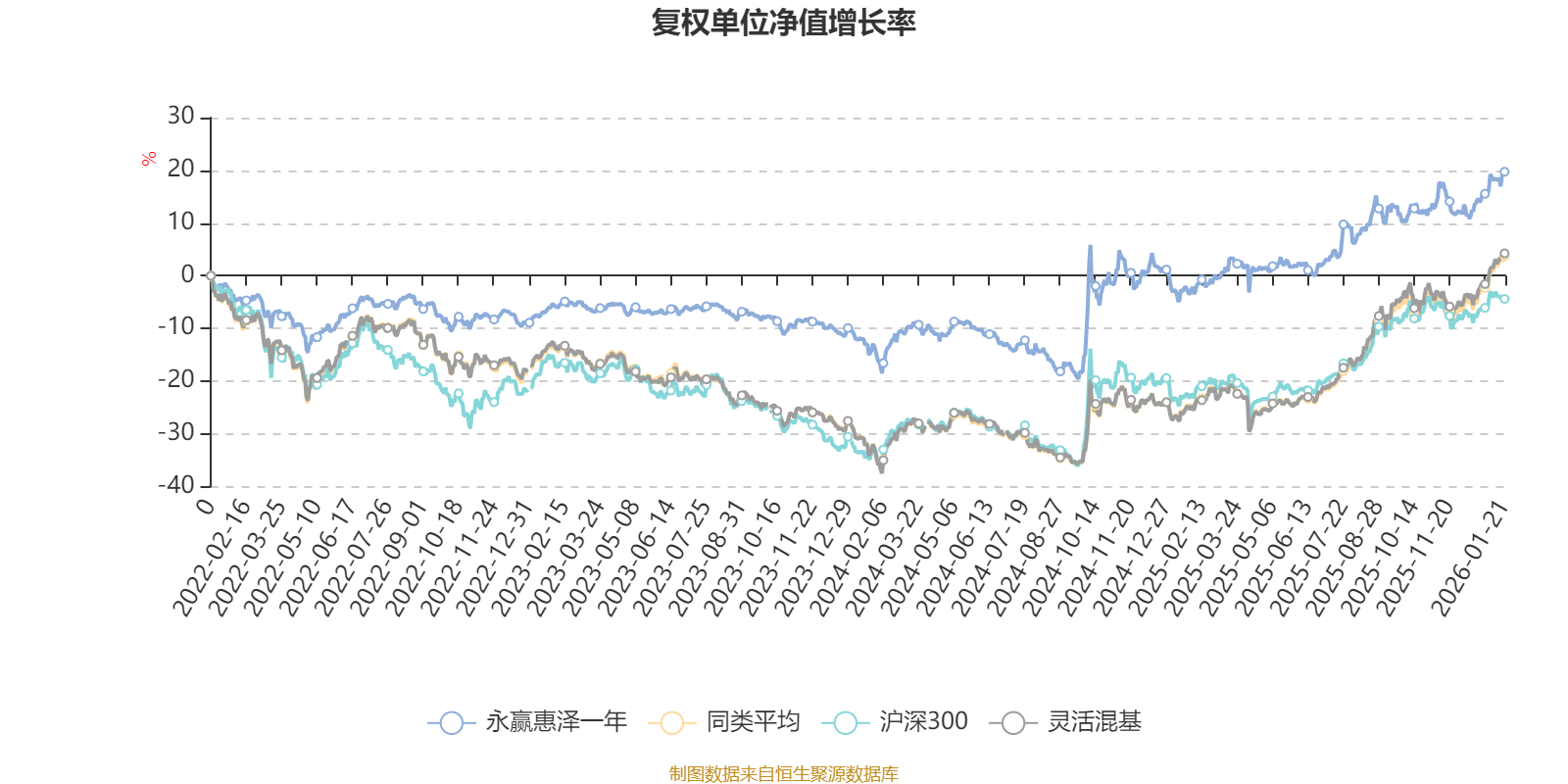 截至1月21日,永赢惠泽一年近三个月复权单位净值增长率为6.58%,位于同类可比基金727/1286;近半年复权单位净值增长率为11.83%,位于同类可比基金902/1286;近一年复权单位净值增长率为23.12%,位于同类可比基金839/1286;近三年复权单位净值增长率为27.78%,位于同类可比基金407/1286。