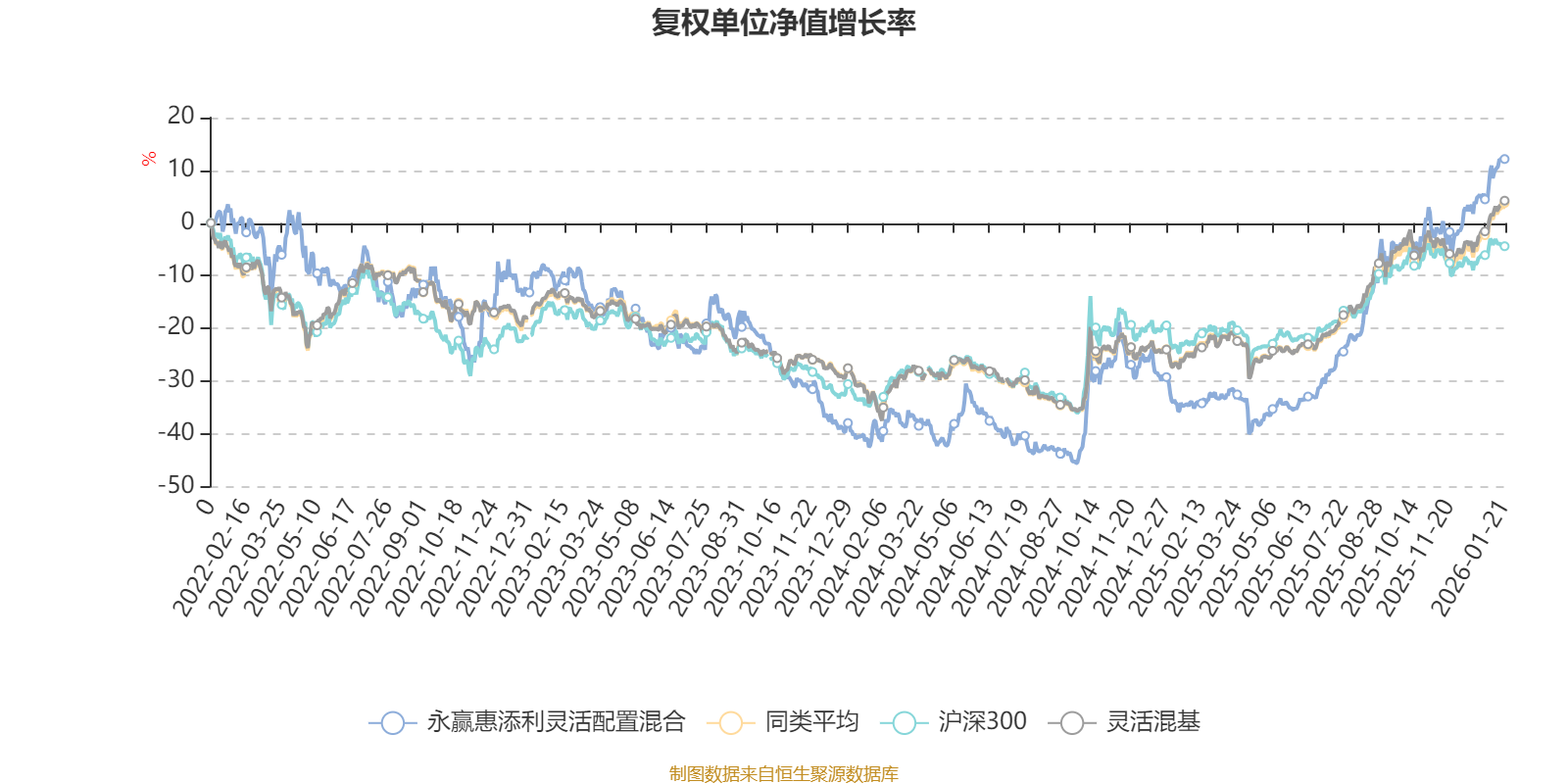 截至1月21日,永赢惠添利灵活配置混合近三个月复权单位净值增长率为15.12%,位于同类可比基金237/1286;近半年复权单位净值增长率为48.02%,位于同类可比基金159/1286;近一年复权单位净值增长率为70.82%,位于同类可比基金106/1286;近三年复权单位净值增长率为22.72%,位于同类可比基金493/1286。