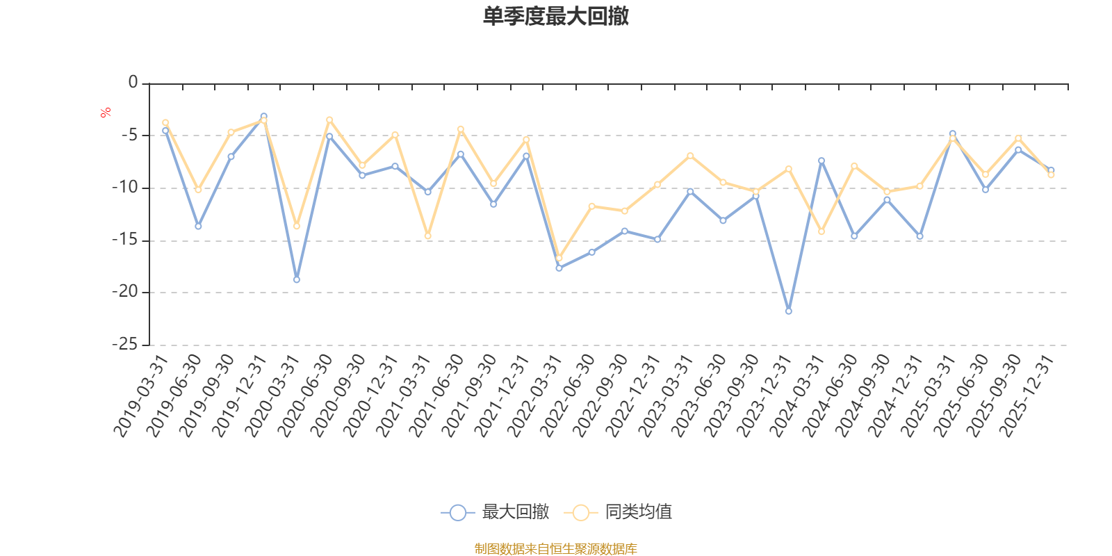 通过所选区间该基金净值增长率分位图,可以观察该基金与同类基金业绩比较情况。图为坐标原点到区间内某时点的净值增长率在同类基金中的分位数。