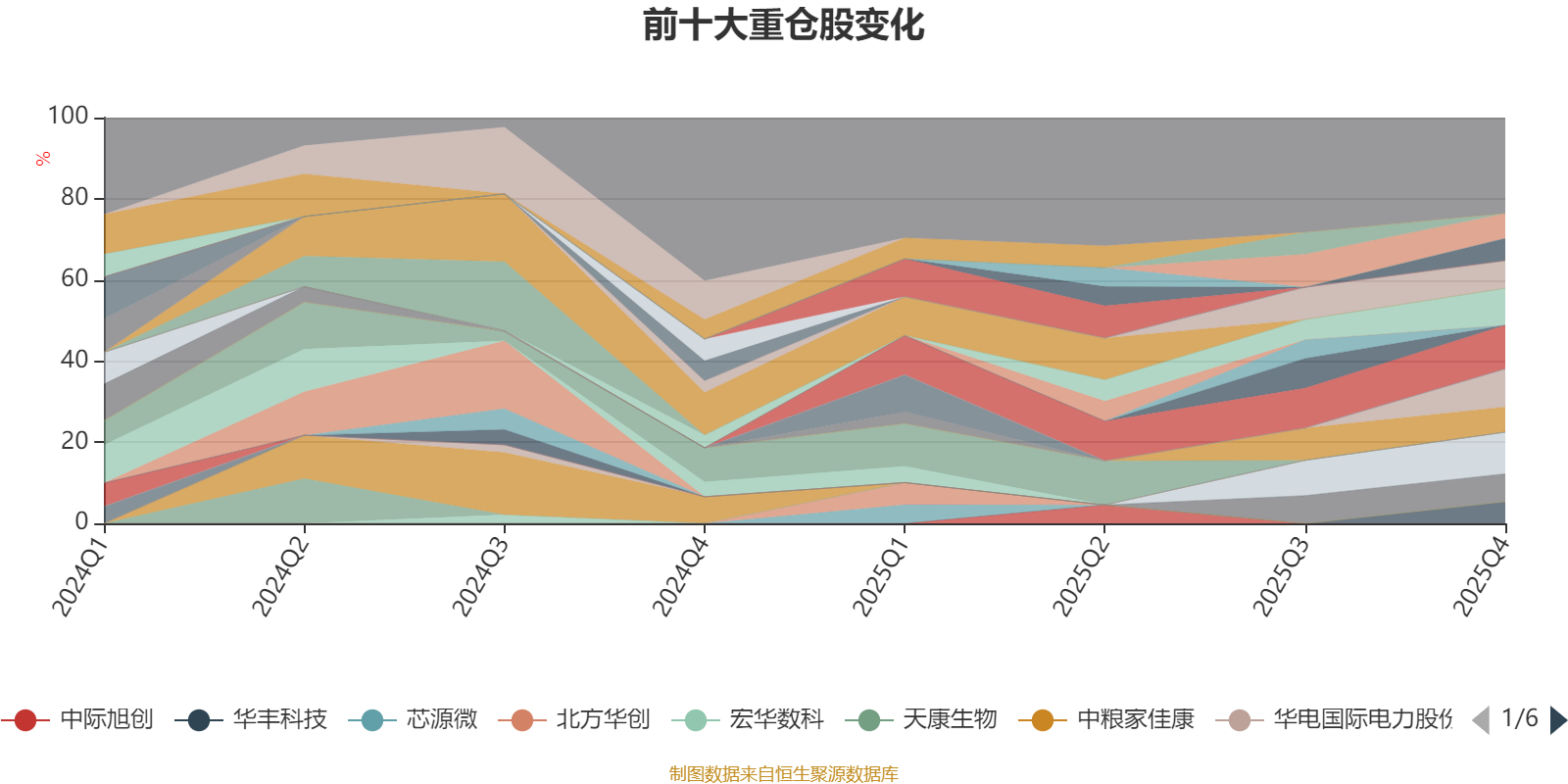 该基金持股集中度较高。截至2025年四季度末,基金十大重仓股分别是寒武纪、哔哩哔哩-W、伟测科技、中芯国际、兆易创新、海光信息、沪电股份、星网锐捷、恺英网络、华丰科技。