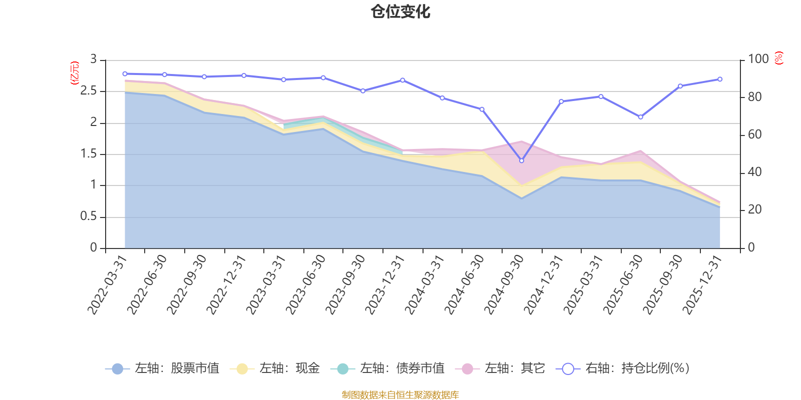据定期报告数据统计,近三年平均股票仓位为79.79%,同类平均为85.83%。2022年一季度末基金达到92.68%的最高仓位,2024年三季度末最低,为46.51%。