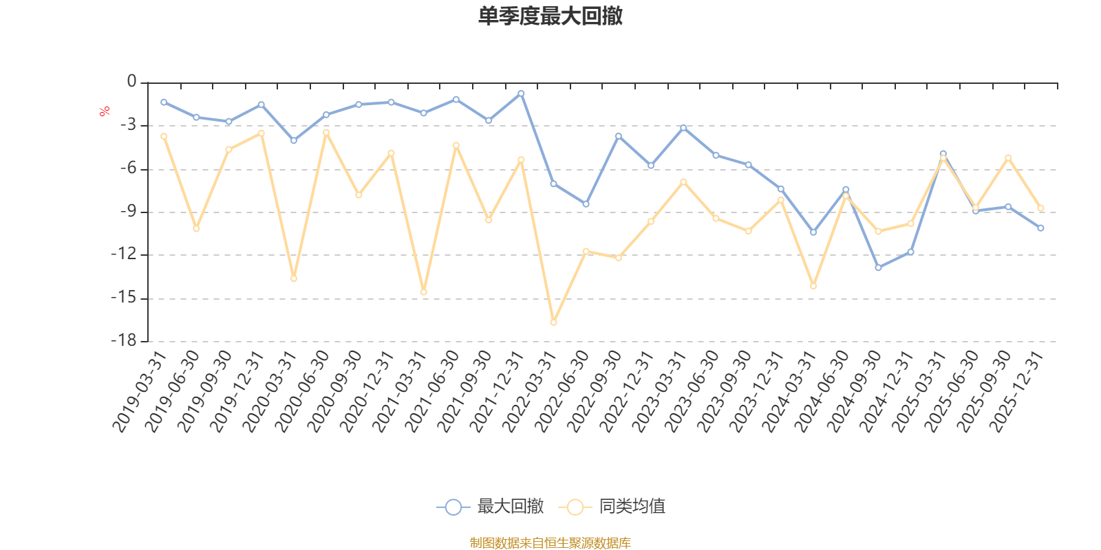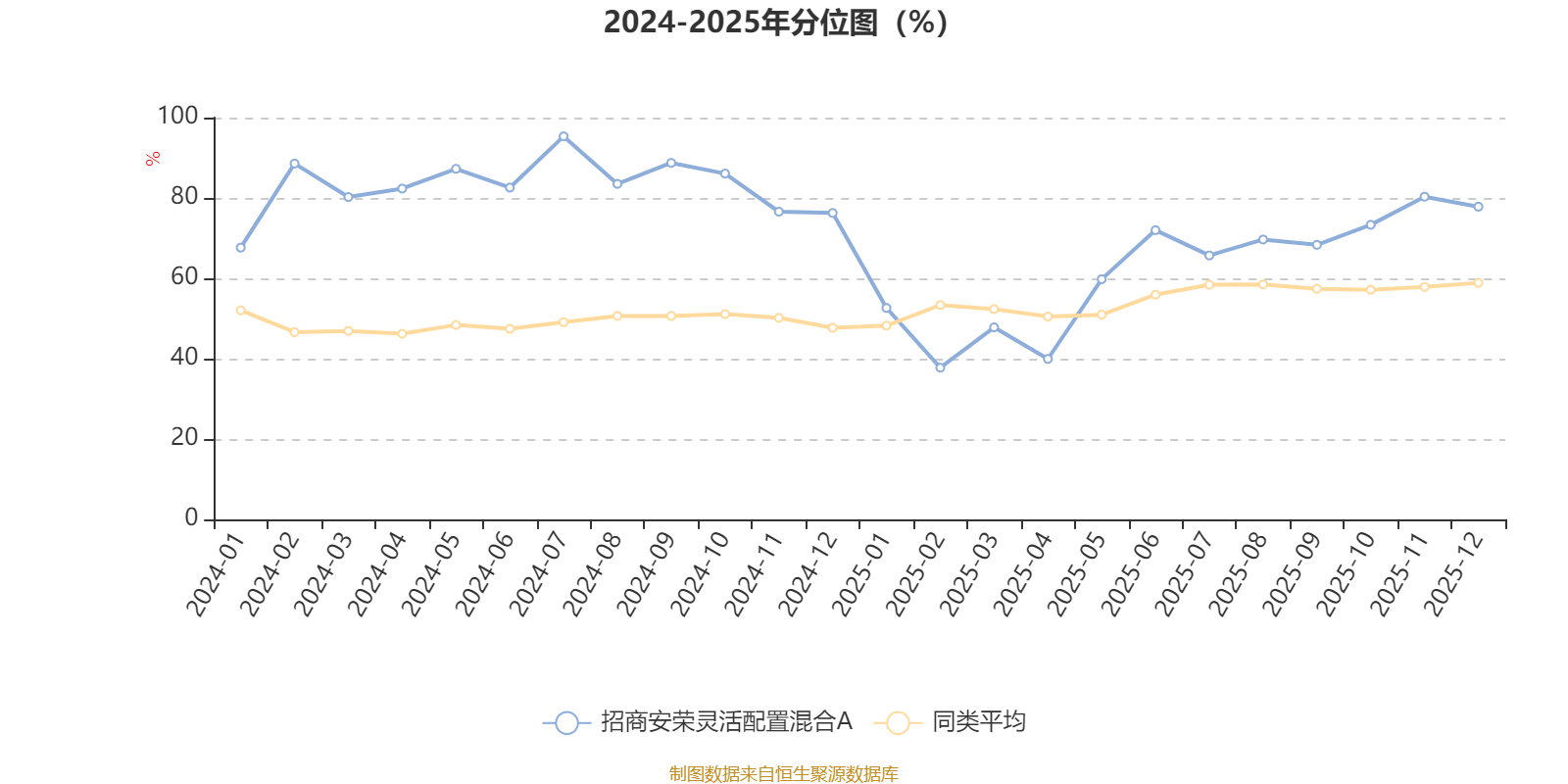 通过所选区间该基金净值增长率分位图,可以观察该基金与同类基金业绩比较情况。图为坐标原点到区间内某时点的净值增长率在同类基金中的分位数。