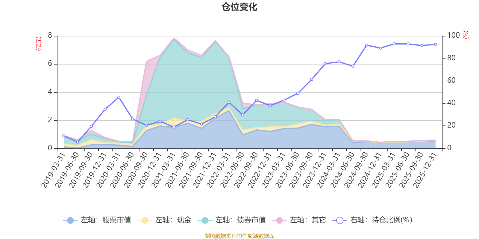 据定期报告数据统计,近三年平均股票仓位为77.39%,同类平均为72.57%。2025年一季度末基金达到92.9%的最高仓位,2019年上半年末最低,为5.55%。