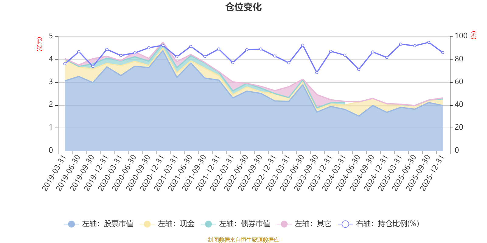 截至2025年四季度末,基金十大重仓股分别是中国平安、紫金矿业、华泰证券、中国国航、浙江鼎力、新城控股、中国太保、中信证券、东方财富、中国人寿。