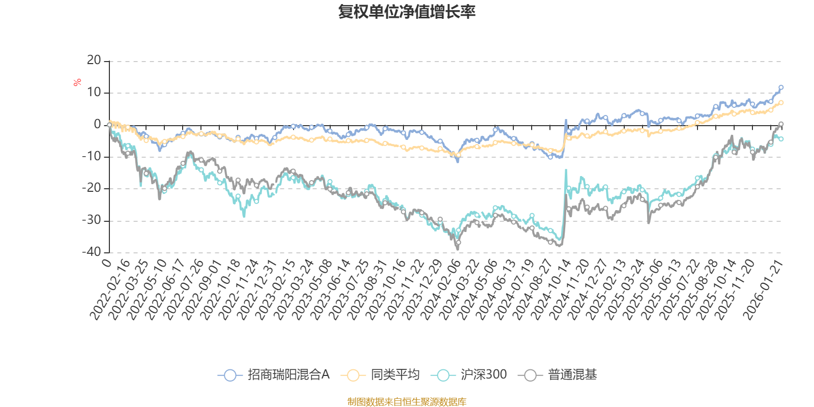 截至1月21日,招商瑞阳混合A近三个月复权单位净值增长率为5.33%,位于同类可比基金61/629;近半年复权单位净值增长率为8.97%,位于同类可比基金94/629;近一年复权单位净值增长率为10.07%,位于同类可比基金198/626;近三年复权单位净值增长率为12.24%,位于同类可比基金256/564。