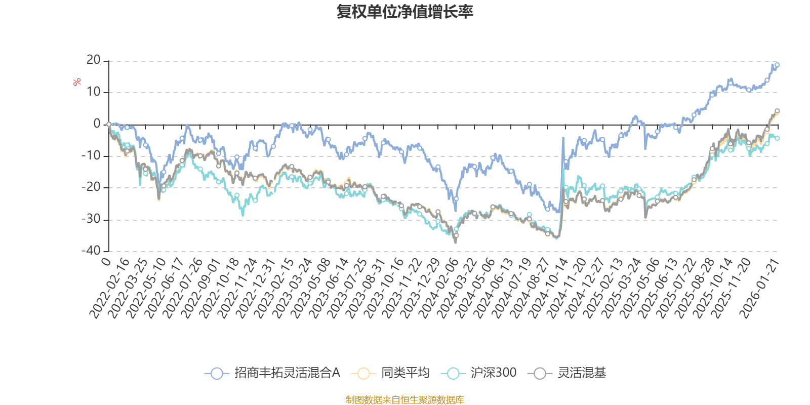 截至1月21日,招商丰拓灵活混合A近三个月复权单位净值增长率为5.67%,位于同类可比基金777/1286;近半年复权单位净值增长率为16.06%,位于同类可比基金811/1286;近一年复权单位净值增长率为26.74%,位于同类可比基金754/1286;近三年复权单位净值增长率为18.50%,位于同类可比基金580/1286。