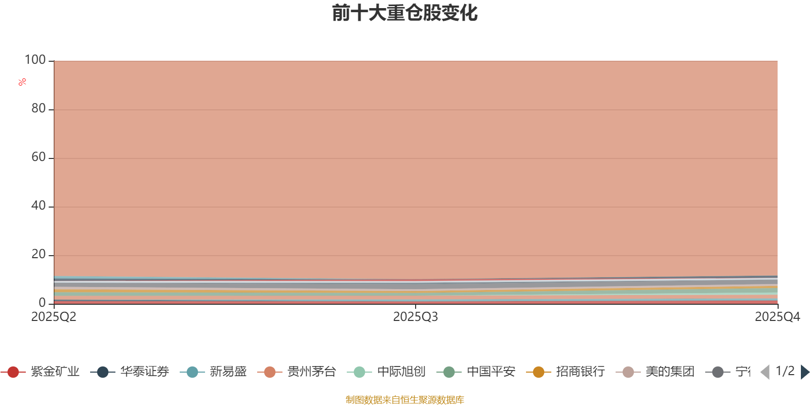 截至2025年四季度末,基金十大重仓股分别是中国平安、宁德时代、贵州茅台、紫金矿业、中际旭创、兴业银行、新易盛、招商银行、美的集团、中信证券。