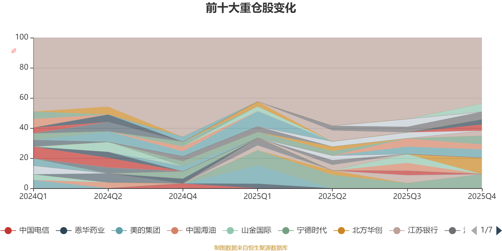 截至2025年四季度末,基金十大重仓股分别是三一重工、宁德时代、立讯精密、伊利股份、鹏鼎控股、中国平安、北京银行、吉祥航空、分众传媒、东方电缆。