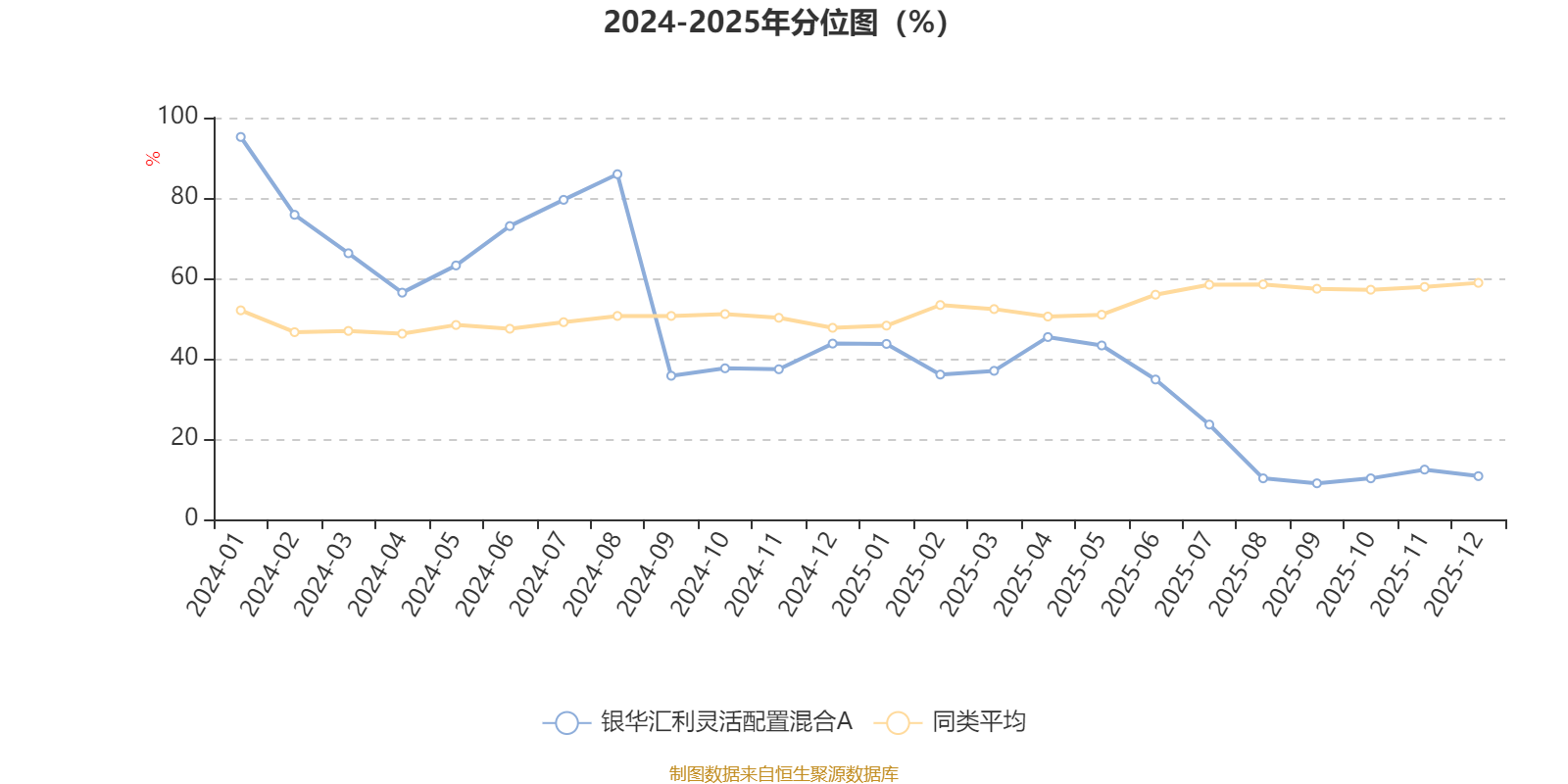 通过所选区间该基金净值增长率分位图,可以观察该基金与同类基金业绩比较情况。图为坐标原点到区间内某时点的净值增长率在同类基金中的分位数。