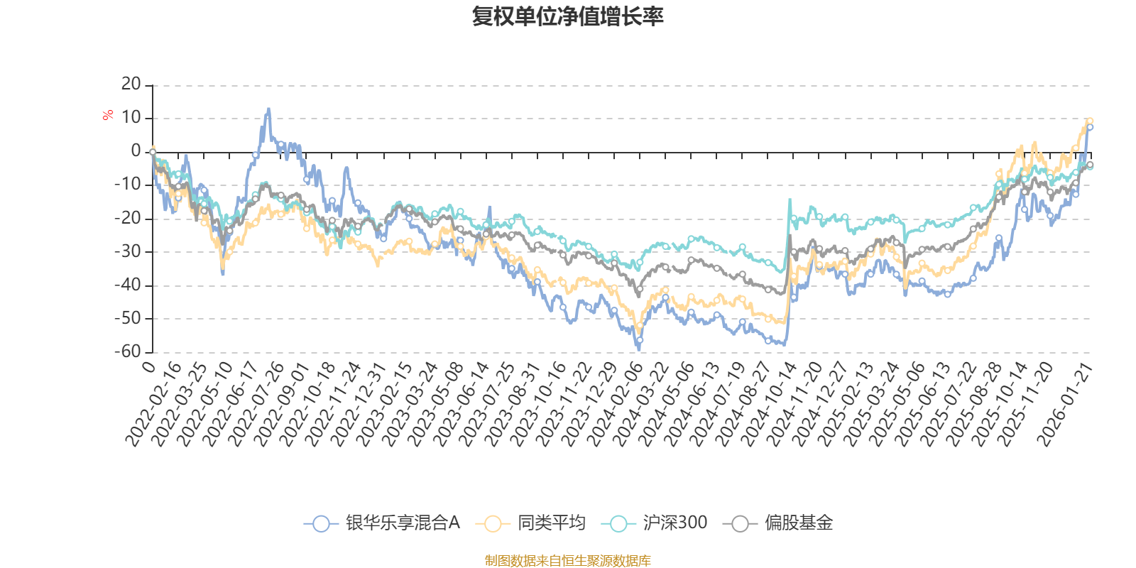 截至1月21日,银华乐享混合A近三个月复权单位净值增长率为33.03%,位于同类可比基金8/229;近半年复权单位净值增长率为73.03%,位于同类可比基金31/229;近一年复权单位净值增长率为77.13%,位于同类可比基金56/222;近三年复权单位净值增长率为29.11%,位于同类可比基金127/165。