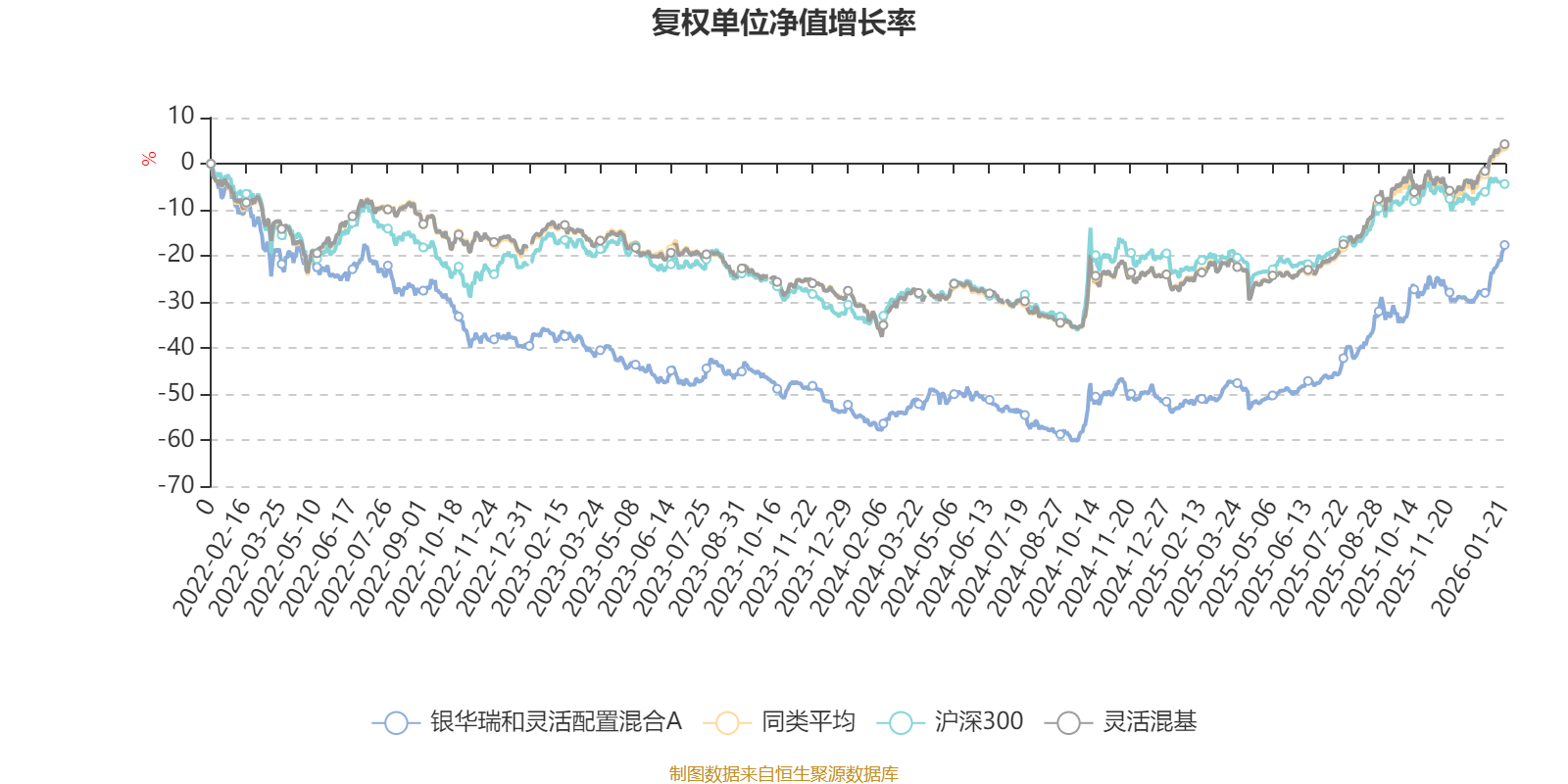 截至1月21日,银华瑞和灵活配置混合A近三个月复权单位净值增长率为14.09%,位于同类可比基金283/1286;近半年复权单位净值增长率为45.11%,位于同类可比基金196/1286;近一年复权单位净值增长率为70.09%,位于同类可比基金116/1286;近三年复权单位净值增长率为28.72%,位于同类可比基金394/1286。