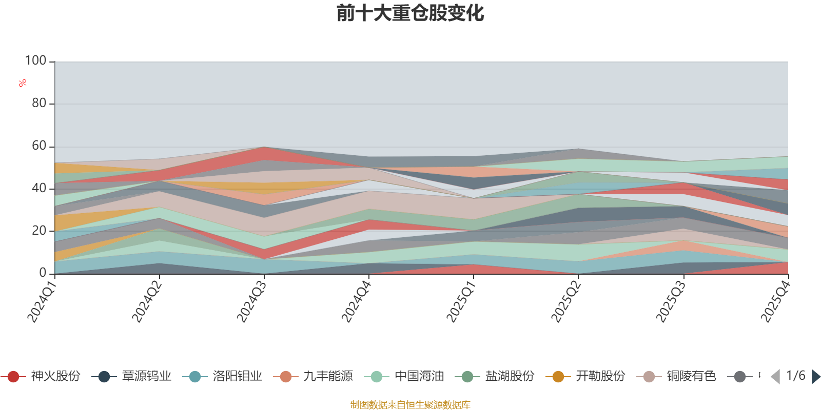 该基金持股集中度较高。截至2025年四季度末,基金十大重仓股分别是陕西煤业、中国海油、桐昆股份、神火股份、中稀有色、中钨高新、潞安环能、新凤鸣、中航沈飞、山煤国际。