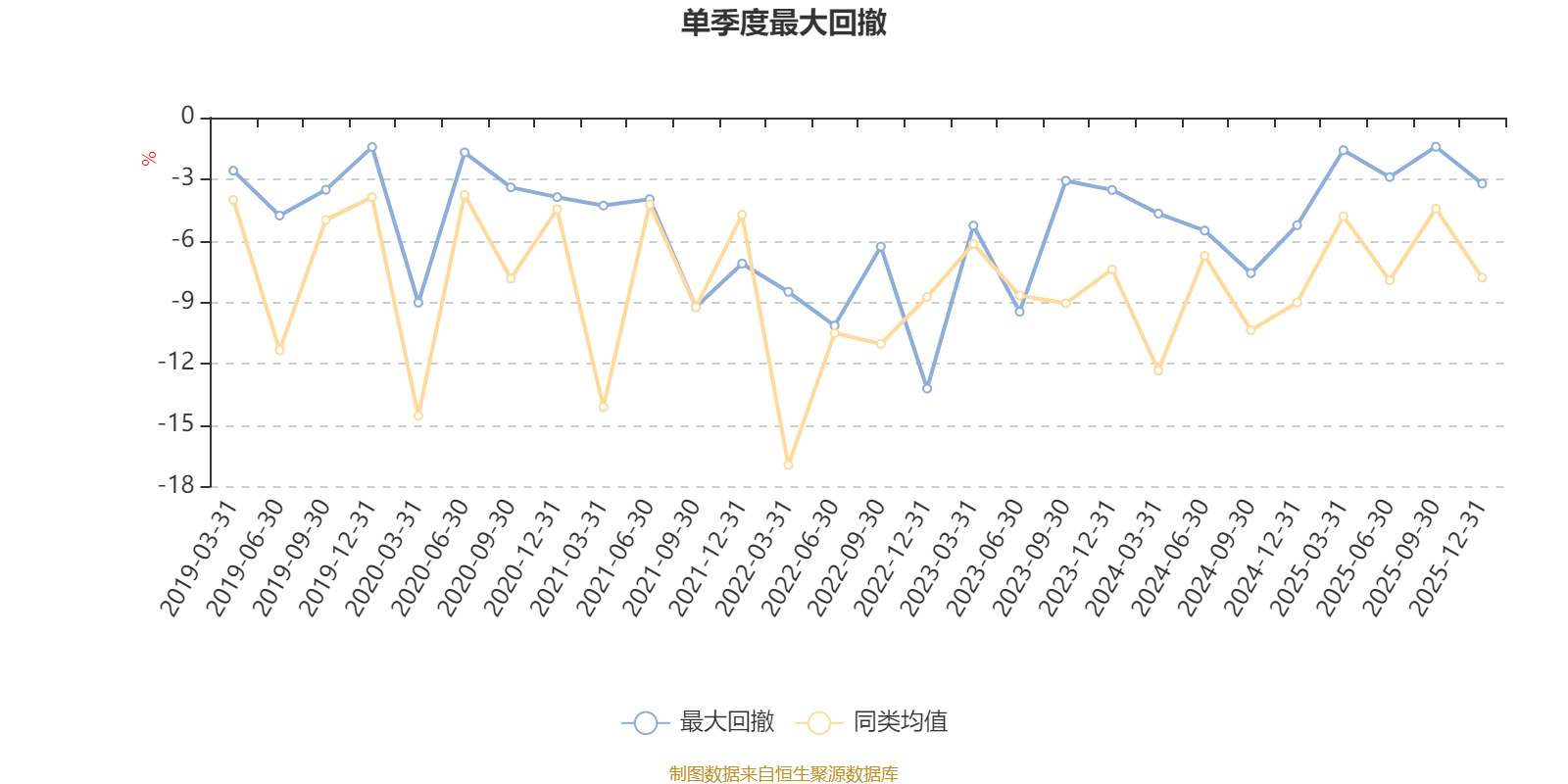截至1月21日,基金近三年最大回撤为12.08%,同类可比基金排名5/120。单季度最大回撤出现在2022年四季度,为13.22%。