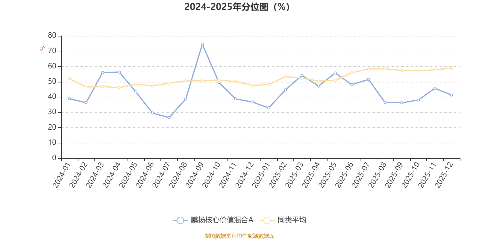 通过所选区间该基金净值增长率分位图,可以观察该基金与同类基金业绩比较情况。图为坐标原点到区间内某时点的净值增长率在同类基金中的分位数。
