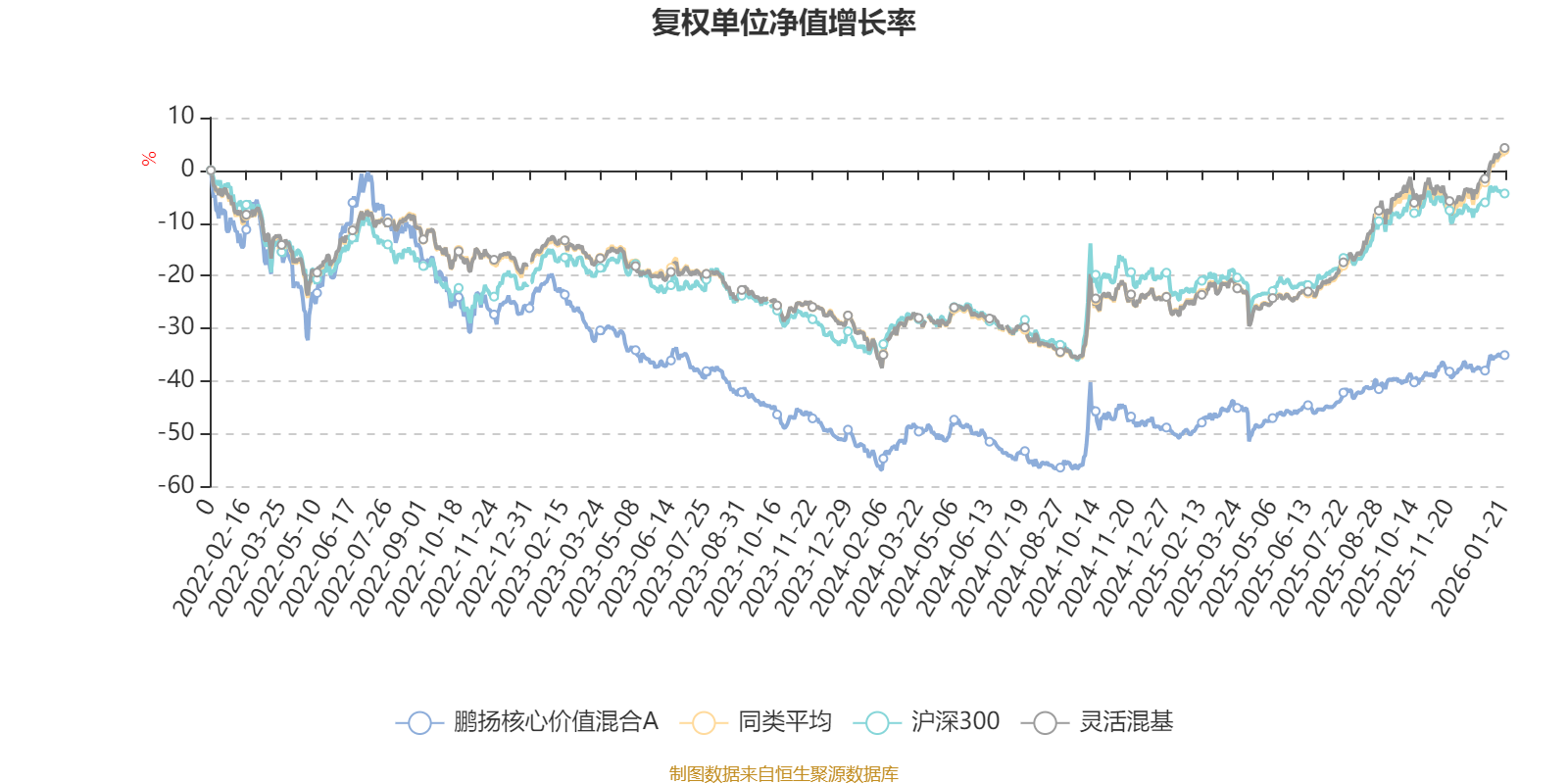 截至1月21日,鹏扬核心价值混合A近三个月复权单位净值增长率为7.40%,位于同类可比基金674/1286;近半年复权单位净值增长率为13.92%,位于同类可比基金853/1286;近一年复权单位净值增长率为28.20%,位于同类可比基金718/1286;近三年复权单位净值增长率为-18.17%,位于同类可比基金1212/1286。