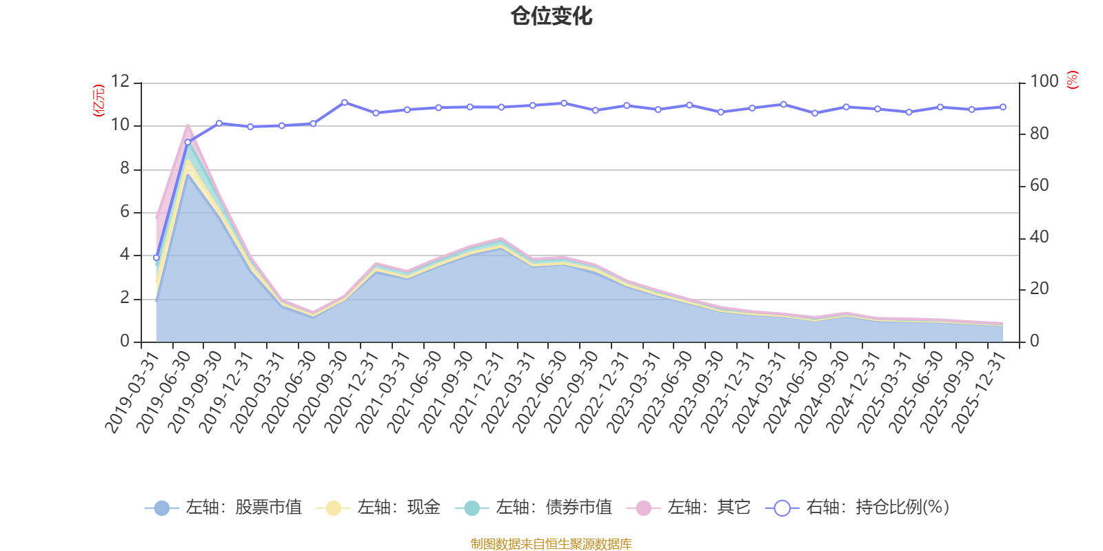 据定期报告数据统计,近三年平均股票仓位为89.98%,同类平均为72.57%。2020年三季度末基金达到92.37%的最高仓位,2019年一季度末最低,为32.49%。