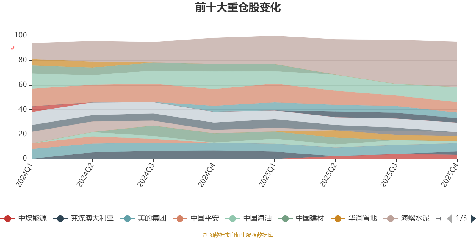 该基金持股集中度较高,近2年前十大重仓股集中度长期超过60%。截至2025年四季度末,基金重仓股分别是中国海洋石油、中国海外发展、宁波银行、美的集团、晋控煤业、华润置地、海尔智家、中煤能源、淮北矿业、兖煤澳大利亚、中国海油。